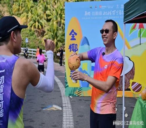 萬寧馬比賽時,微信推送提示第一賽道強哥在直播,我點進去看了一會,站在賽道旁的強哥邊吆喝邊給選手遞椰子、椰子水,忙得不亦樂乎。