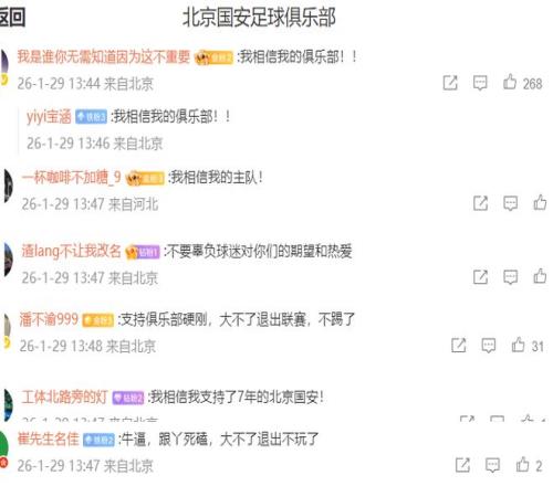 破防!北京國安球迷:我相信我的主隊,大不了退出不踢了