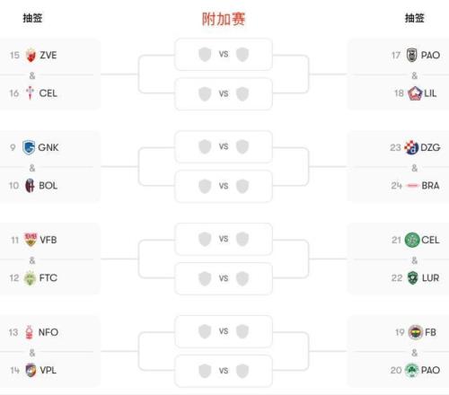 附加賽抽簽將於北京時間1月30日(本周五)20點進行,兩回合比賽則在3周之後:首回合2月19日,次回合2月26日(當地時間)。