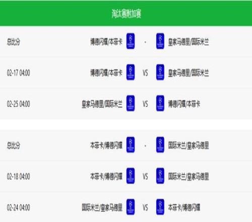 全部附加賽結束後,歐冠16強名單將正式出爐,並於2月27日進行真正的16強抽簽。