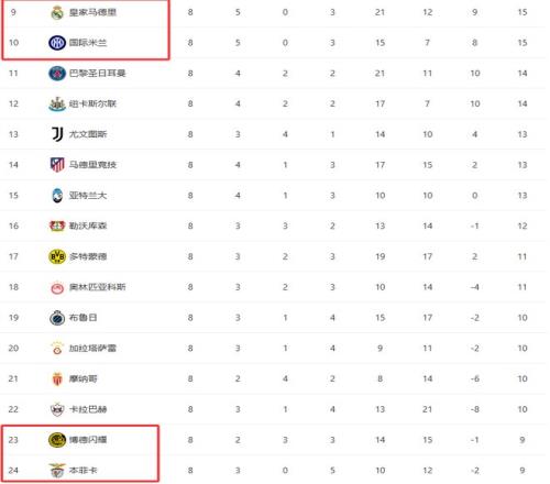 根據歐冠聯賽階段排名,積分榜前8名的球隊已經鎖定直通16強的資格,無需參加附加賽。他們分別是:英超阿森納、德甲拜仁慕尼黑、英超利物浦、英超熱刺、西甲巴薩、英超切爾西、葡超葡萄牙體育和英超曼城。