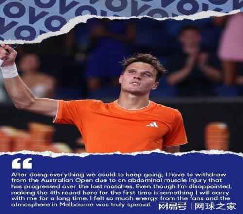 2026年澳網的戲劇性場麵在網球界引起了廣泛討論。德約科維奇連勝三場打進第四輪後,連續兩場比賽都以對手退賽的方式晉級。捷克新星門希克因腹部肌肉撕裂,經醫療團隊評估後選擇賽前退賽,接著是意大利選手穆塞蒂,他在兩盤領先德約科維奇後,因右腿傷勢無奈退賽。