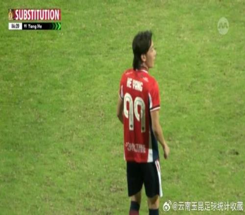 本場比賽進行到第87分鍾,楊賀替補登場完成後港聯首秀。