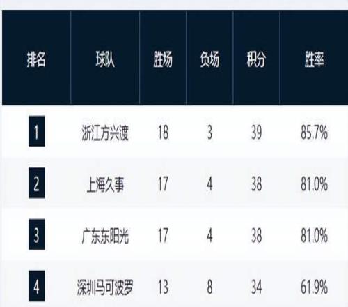 第4至第8名競爭異常膠著:青島隊與浙江隊同為12勝9負,分列第七、第八;青島隊遭遇五連敗,狀態低迷,而浙江隊則保持穩定。此五隊之間僅差1至2個勝場,任何一場勝負都可能引發排名洗牌。
