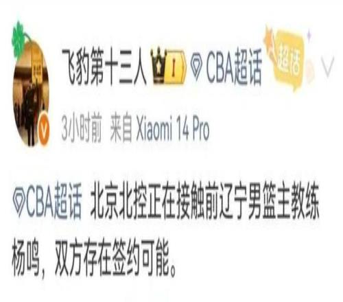 自從楊鳴在遼寧男籃卸任了主教練的職務後,又開始進行賽事解說。從在遼寧男籃執教的履曆來看,楊鳴的執教能力還是非常不錯的,帶隊完成過三連冠。遼寧男籃本賽季的表現有些糟糕,作為主教練的楊鳴雖然難辭其咎,但更重要的是球隊的陣容問題比較大。在媒體人楊毅透露出有球隊在接觸楊鳴的消息後,這件事有了最新進展。據知情人透露,接觸楊鳴的球隊是北控男籃,雙方存在簽約的可能性。