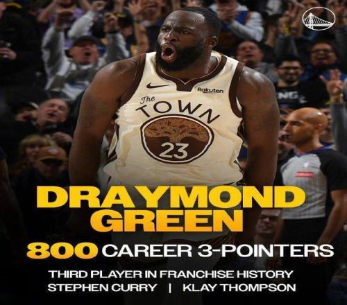 追夢達成生涯800記三分裏程碑,成為勇士隊史第3人,前兩位是庫裏與克萊。
