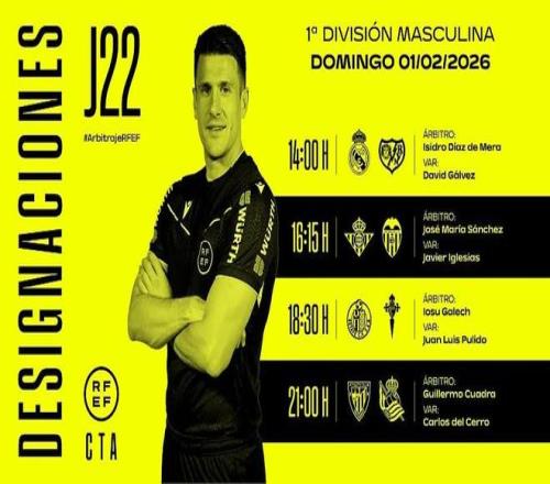 西班牙足協官方公布了周日西甲四場比賽的裁判安排,迪亞斯-德梅拉將執法皇馬vs巴列卡諾。