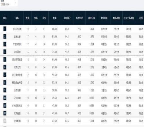 CBA最新排名出爐!廣廈第1太穩,山東殺進4強,遼籃重返季後賽區_24直播網