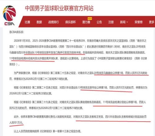 2月1日,中午12點!CBA公司開出一份大罰單,同曦隊、四川隊一共有4人被停賽,6人被罰款,兩隊的罰款金額達到160000元。