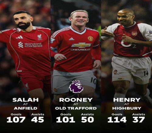 在與紐卡斯爾聯的英超第24輪比賽中送出1次助攻後,薩拉赫在安菲爾德球場進行的英超比賽中已直接參與152球,打破了亨利和魯尼保持的英超單一球場參與進球最多紀錄。