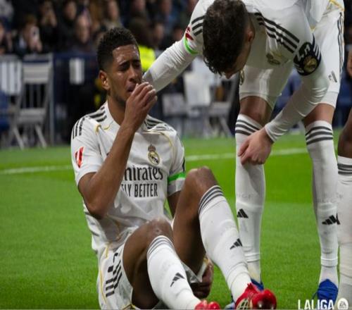 開場隻有8分鍾,皇馬就遭遇重大打擊,貝林厄姆無球跑動的過程中突然捂住左大腿後側,疑似遭遇肌肉拉傷。