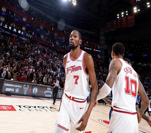 本場比賽中,火箭雖然取得了比賽的勝利,但是球隊的先發鋒線球星凱文-杜蘭特(Kevin Durant)的表現令人大跌眼鏡。杜蘭特全場出場38分15秒,投籃17中6,三分線外4中1,得到了13分5籃板8助攻2搶斷的數據,還有1次失誤和2次犯規,正負值為+1。杜蘭特在進攻端依然是得到了大量的出手機會,然而他的進攻效率簡直是慘不忍睹,他的得分能力和投射能力都完全沒有發揮出來。事實上,13分也是杜蘭特本賽季的個人單場第二低得分,這也能夠說明他的狀態有多糟糕。以杜蘭特的能力以及最近一段時間的表現,他無疑應該在場上起到更大的作用。如果他的手感稍好一些,火箭可能都會贏得更加輕鬆一些。