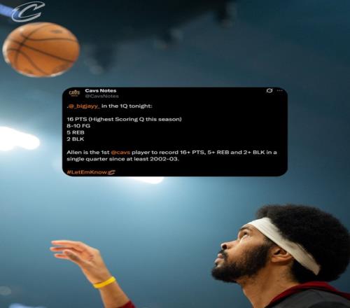 這場比賽是讓楊瀚森競爭者克林根紮心一戰,首節在克林根的防守下,騎士隊中鋒賈萊特-阿倫9分鍾裏,10中8,拿到16分5籃板1搶斷2蓋帽,命中率80%,在籃下有4次很輕鬆的暴扣,他成為騎士隊史02-03賽季首位單場16+5+2蓋帽的球員。