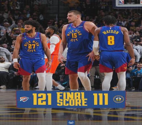 16分的分差並不算太大,但是以約老師和穆雷今天的狀態,掘金也很難翻盤。第四節還剩3分鍾,雷霆依然領先17分,掘金換下主力球員。全場結束,掘金111-121不敵雷霆。剛剛入選全明星的賈馬爾-穆雷16中4,小哈達威6中0。