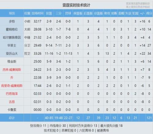 卡森-華萊士三分11中7砍下27分6板2斷,得分和三分命中數都是生涯最高。掘金全場比賽從未領先過,此役過後跌至西部第三。最後看看數據: