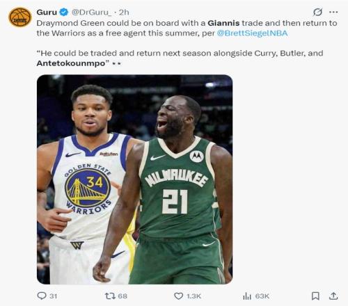 此前BrettSiegel就透露,勇士隊最多可以為字母哥送上4個首輪簽+1個首輪互換權,籌碼方麵德雷蒙德-格林都已經願意充當揚尼斯的籌碼,在下賽季合同到期後,勇士可以將追夢簽回重新搭檔庫裏。