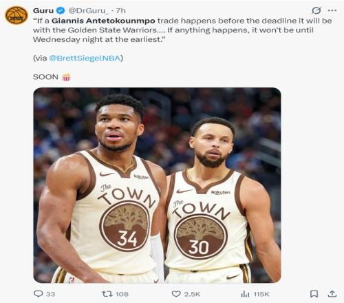 北京時間2月2日晚,根據美記BrettSiegel的報道,假如揚尼斯會在交易截止日前被交易,那麽大概率揚尼斯的下家就是金州勇士隊。此前金州勇士隊已經表態球隊隻有庫裏一人是非賣品。