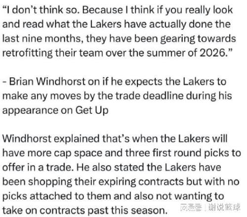 就連包括溫德霍斯特在內的其他記者,也覺得湖人之所以不想留住詹姆斯,是因為放棄在這個賽季爭冠可能性。所以哪怕截止日前,湖人都不太可能做出有效補強,湊合把這個賽季給熬完,等今年夏天詹姆斯合同到期,雙方分道揚鑣以後,湖人可以騰出薪資空間。到時候管理層工作很多,比如需要給裏夫斯開出新合同,八村塁、艾頓和斯瑪特等人,可能麵臨續約事宜,詹姆斯的未來去向,同樣會成為焦點。