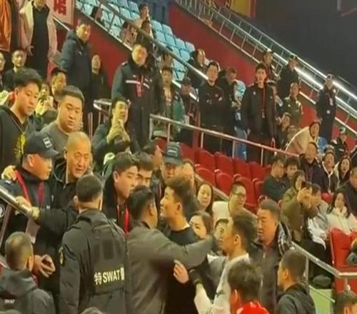 比賽輸贏沒什麽,但場邊出現了一些衝突,吉林隊球場內的安保和孫銘徽一家人有言語衝突,據說安保有辱罵行為,這也讓孫銘徽非常憤怒,站起來和對方理論,幸虧隊友和工作人員將他死死抱住。