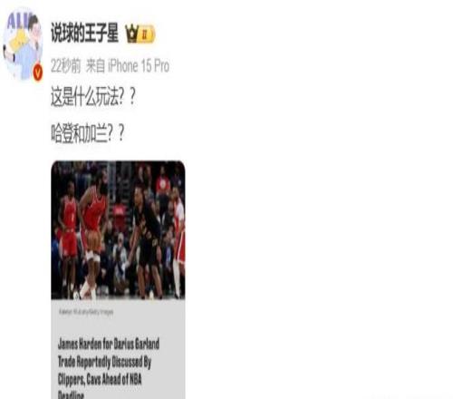可能在他看來,哈登加盟騎士後,會和加蘭配合,組成一支競爭力強大的隊伍。