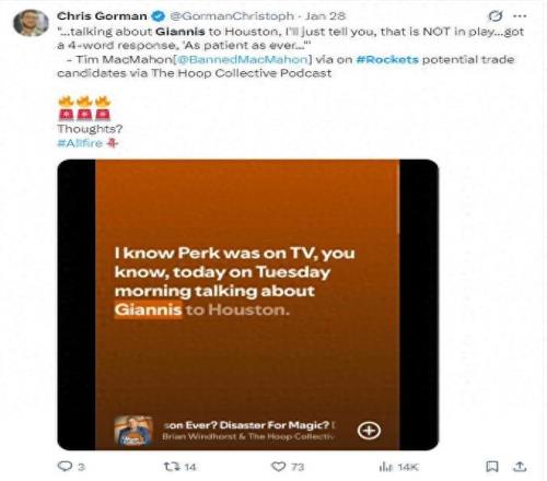 "建議聯盟調查交易流言源頭!這明顯是雄鹿故意放風打壓士氣!"