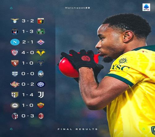 意甲第23輪綜述:米蘭三球完勝仍落後國米5分,尤文超羅馬進前四