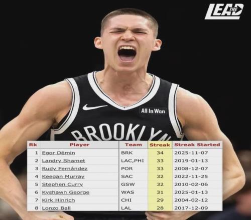 連續34場!打破NBA曆史紀錄!天才8號秀爆發了_24直播網
