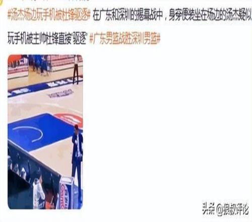 外界重點關注湯傑玩手機,大概率是廣東對陣深圳的比賽,杜鋒要求年輕球員需要認真看比賽,但湯傑在替補席後麵玩手機,怒氣值拉滿杜鋒直接驅逐了湯傑離場。