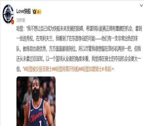 北京時間2月4日,NBA交易市場迎來關鍵節點,據知名記者沙姆斯·查拉尼亞等多家權威媒體報道,洛杉磯快船與克利夫蘭騎士達成協議,詹姆斯·哈登與達裏厄斯·加蘭互換東家,這筆交易迅速成為輿論焦點,預示著東西部競爭格局可能因此產生新的變數。