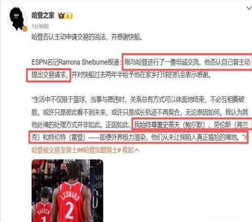 聯手米切爾後,哈登正式發聲:加盟騎士很興奮,但我沒有申請交易