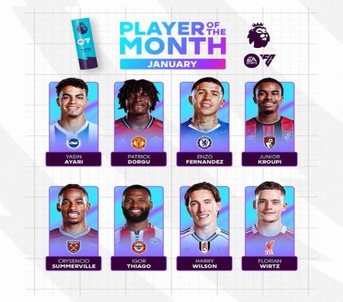 北京時間2月5日,英超官方公布了1月最佳球員的候選名單,其中多古、恩佐、維爾茨等球員在列。