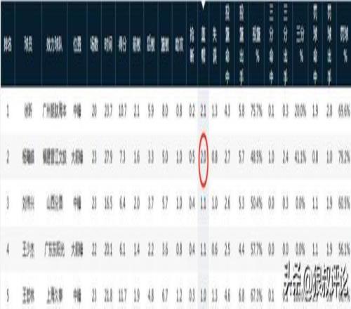 楊曦皓代表福建出戰23場比賽,首發19場,場均得到27.9分鍾的出場時間,交出7.3分5.0籃板1.0助攻2.0封蓋,其中,2.0次封蓋位居所有新秀球員最高,僅次於徐昕的2.1次,毫無疑問是一個非常出眾的護框手。
