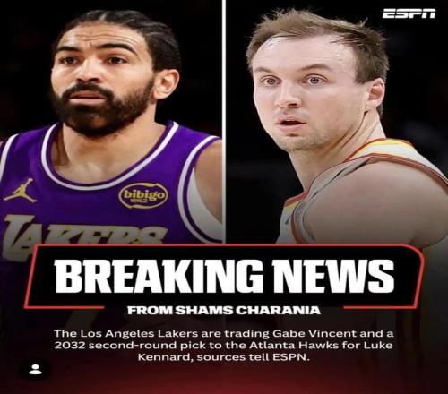 據Shams報道,湖人將蓋布-文森特和一個2032年的次輪簽送到老鷹,得到盧克-肯納德