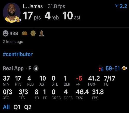 所幸,末節決戰階段詹姆斯爆發,他單節8中5得到10分,持續衝擊內線率領湖人反撲追分,從而最終驚險逆轉戰勝76人取勝。