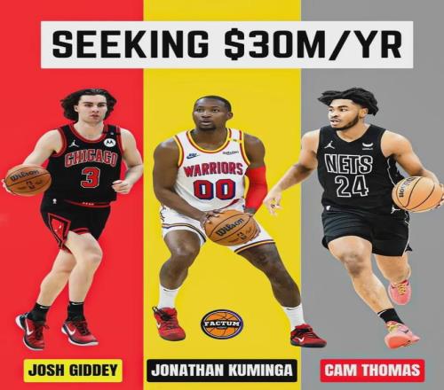 2025年休賽期,托馬斯和籃網續約談判不順,就像庫明加和勇士一樣。托馬斯想要5年1.5億美元的大合同,但籃網隻給他2年3000萬美元,而且第二年還是球隊選項。托馬斯一氣之下,選擇接受籃網1年599萬美元的資質報價。