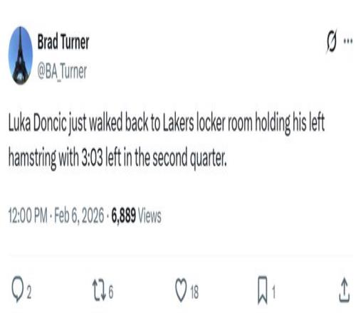 湖人雖然拿下勝利,但核心東契奇因傷退場,在第二節一次進攻回合後,東契奇捂著自己的小腿退場,期間還踢了一下場邊的廣告牌看起來十分沮喪,隊記Brad Turner跟進曝出東契奇是左腿筋受傷。