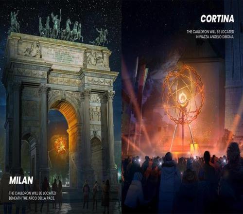 和北京冬奧會相似,本屆冬奧會也設置了多座火炬台,準確來說是兩座,分別位於米蘭的和平拱門以及科爾蒂納丹佩佐的迪博納廣場,直接把主火炬台安排在公共空間而非開幕式主場館,這和 2024 年巴黎奧運會的設定相似。