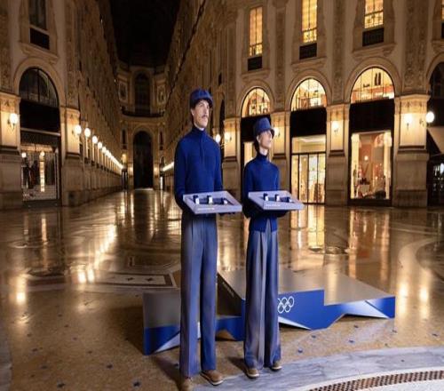 禮儀製服采用了本屆冬奧會視覺形象中主打的藍色調,和頒獎台的配色一致。帽子、針織衫、長褲、大翻領長款羽絨服、棕色戶外靴、藍色皮手套,整體簡潔優雅,也強調實用性與舒適性,很體現優雅的意式風格。