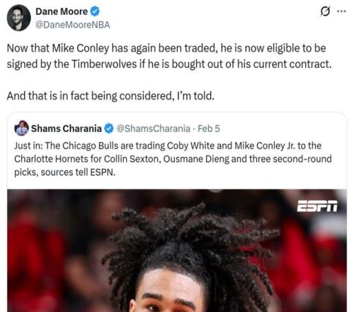 38歲的康利先是被森林狼送往公牛,隨後又輾轉前往黃蜂,後者後場人才濟濟,預計將買斷康利,為他重回鋪平道路,森林狼也做好了與這名更衣室領袖重聚的準備。