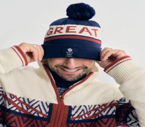 犬牙紋大衣、手工編織圍巾上寫著“GREAT”,紅藍配色鮮明卻有調性,一看就很英國。