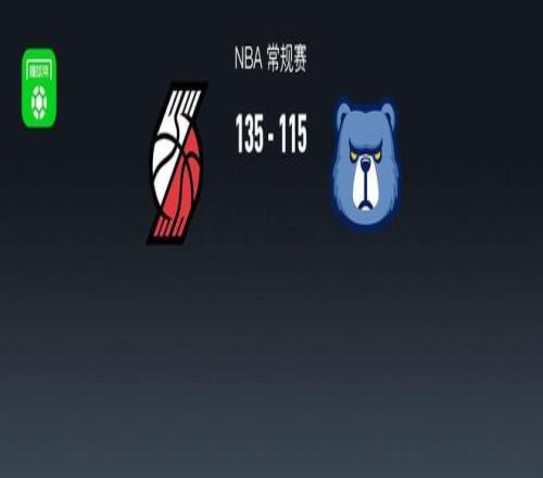 第四節開拓者呂佩爾拿下12分,灰熊普羅斯珀拿下5分,最終開拓者135-115戰勝灰熊