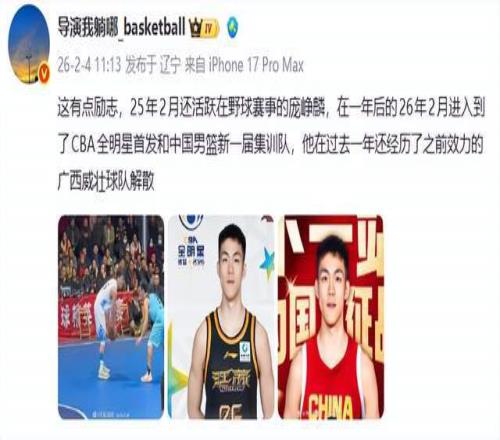 就像“導演我躺哪”說得那樣:“這有點勵誌,25年2月還活躍在野球賽事的龐崢麟,在一年後的26年2月進入到了CBA全明星首發和中國男籃新一屆集訓隊,他在過去一年還經曆了之前效力的廣西威壯球隊解散。”