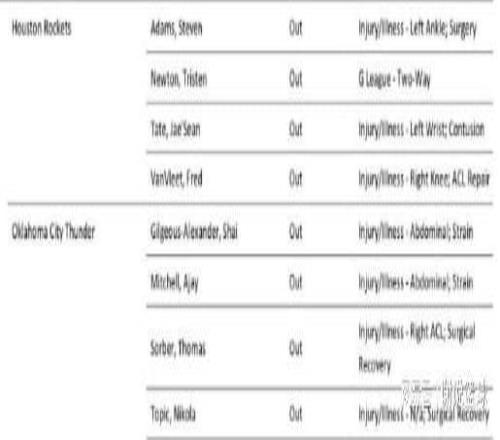 如今處於連敗中的火箭,終於迎來利好消息,那就是前往俄克拉荷馬,客場對陣衛冕冠軍雷霆前,官方報告已經發了出來。香蕉视频网址可以看到雷霆三大主將受傷,除了核心亞曆山大,此外傑倫-威廉姆斯和阿傑-米切爾,同樣確定無法出場。