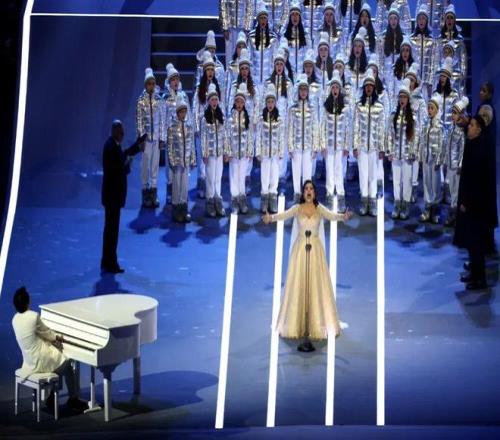 中國鋼琴家郞朗與意大利歌唱家巴托莉在開幕式現場表演。這是2008年北京奧運會後,郎朗時隔18年第二次在奧運會開幕式上表演。