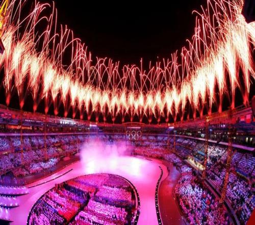 奧運聖火點燃,隨後和平拱門上空綻放出絢麗的煙花。米蘭-科爾蒂納冬奧開幕式結束。