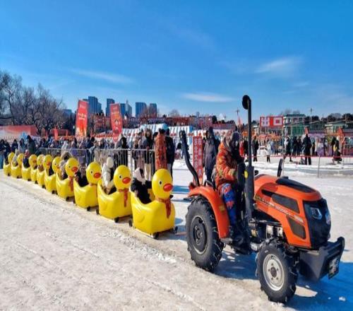 2026年2月1日,遼寧沈陽,新年春節將至,北陵冰雪大世界設置了冰滑梯、自行車樂園、網紅鐵牛拖拉機等遊樂項目,吸引不少遊客前來體驗遊玩。視覺中國 圖