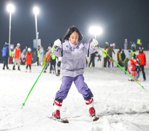 2026年1月2日,人們在江蘇省句容市寶華山國家森林公園滑雪場滑雪。新華社 圖