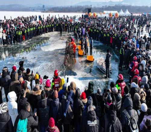 2026年2月1日,沈陽棋盤山第二屆秀湖冬捕嘉年華暨漁業經貿會舉行。據了解,本次活動將冰雪運動、漁獵文化、美食文化相融,匯冬捕之趣、魚宴之鮮、民俗之美、經貿之機為一體,打造了產業一體化、體驗一站式的冰雪新IP 。視覺中國 圖