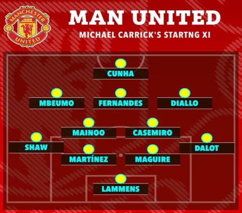 本場比賽前,曼聯在夢劇場紀念了慕尼黑空難68周年。卡裏克沿用了上輪3-2擊敗富勒姆的首發陣容,他執教後4場比賽隻有一個首發調整,就是庫尼亞替代了受傷的帕特裏克·多古,這跟阿莫林47場英超隻有一次首發不變截然相反。