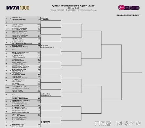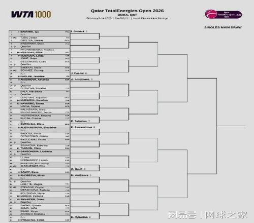 香蕉视频网址再來關注WTA1000多哈站。北京時間昨晚,這站女子1000賽公布了單雙打正賽簽表。單打前八大種子對位:上半區,斯瓦泰克--鮑裏妮、阿尼西莫娃--斯維托麗娜;下半區,亞曆山德洛娃--高芙、米拉-安德列娃--萊巴金娜。中國一姐鄭欽文抽到了下半區,首戰前澳網冠軍肯寧。